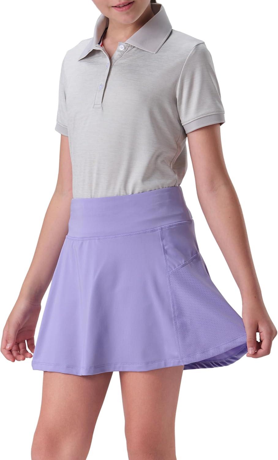 3 Pack Girls’ Athletic Skirts with Built-in Shorts and Adjustable Waist, Youth Kids Skorts Tennis Golf Running(Aqua/Lilac/Hot Pink)