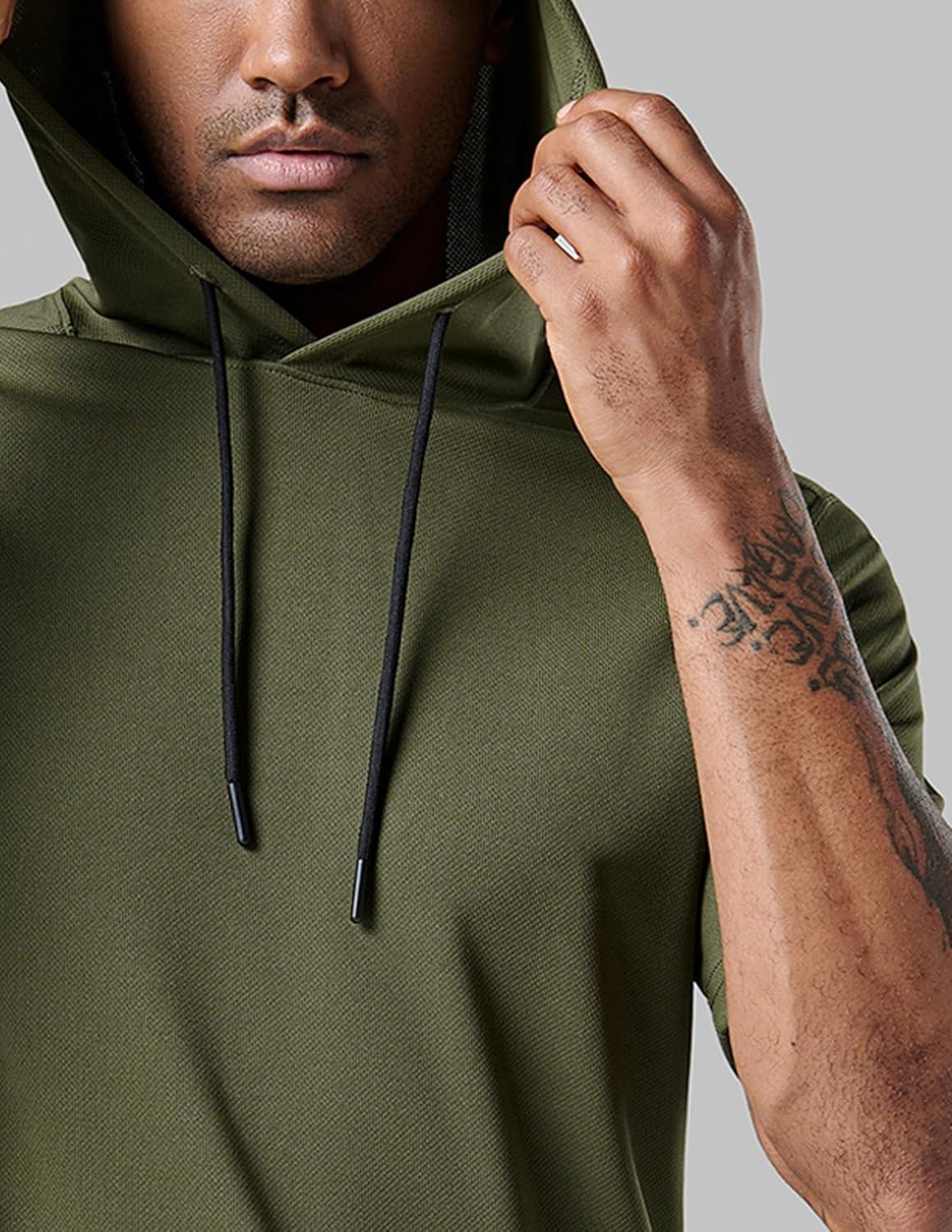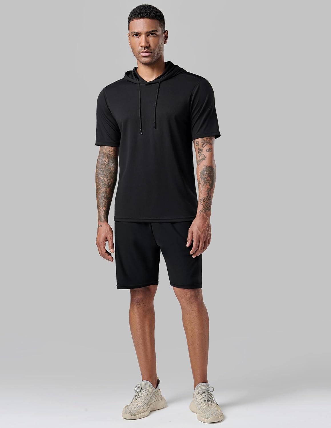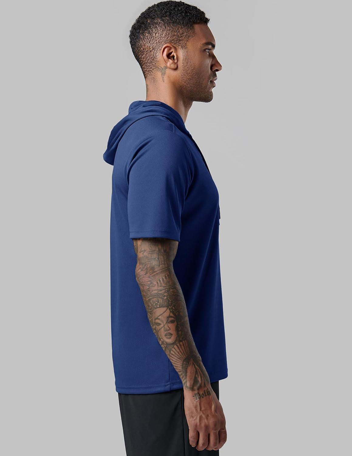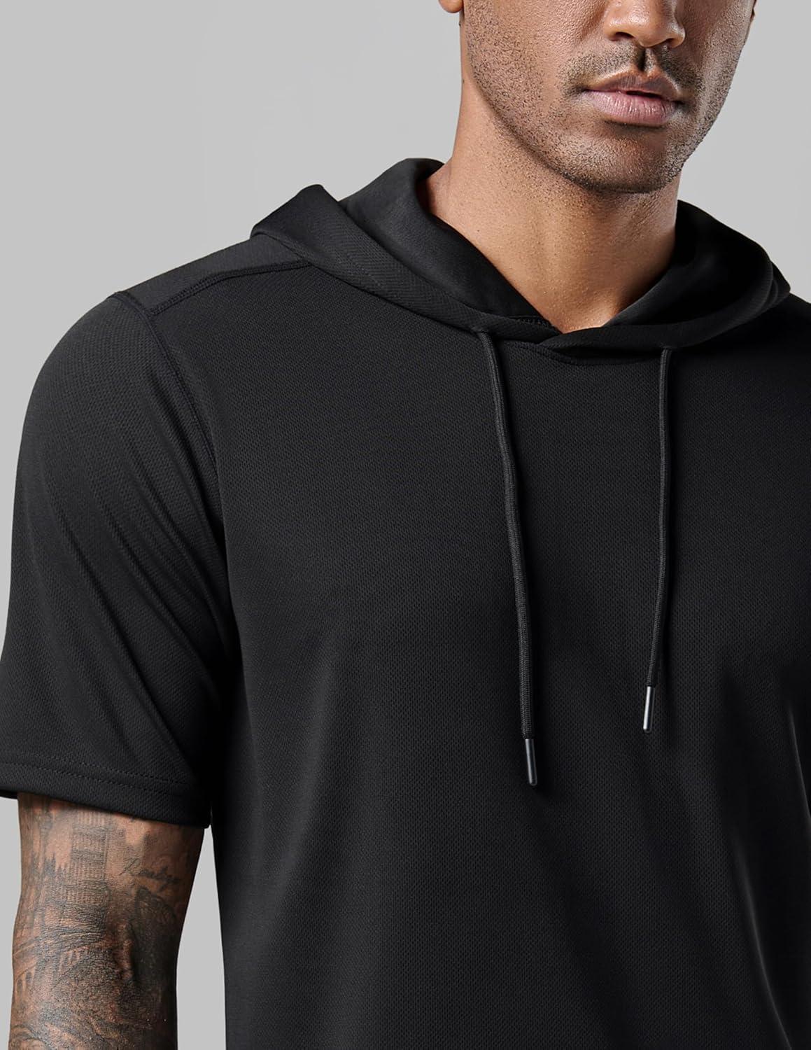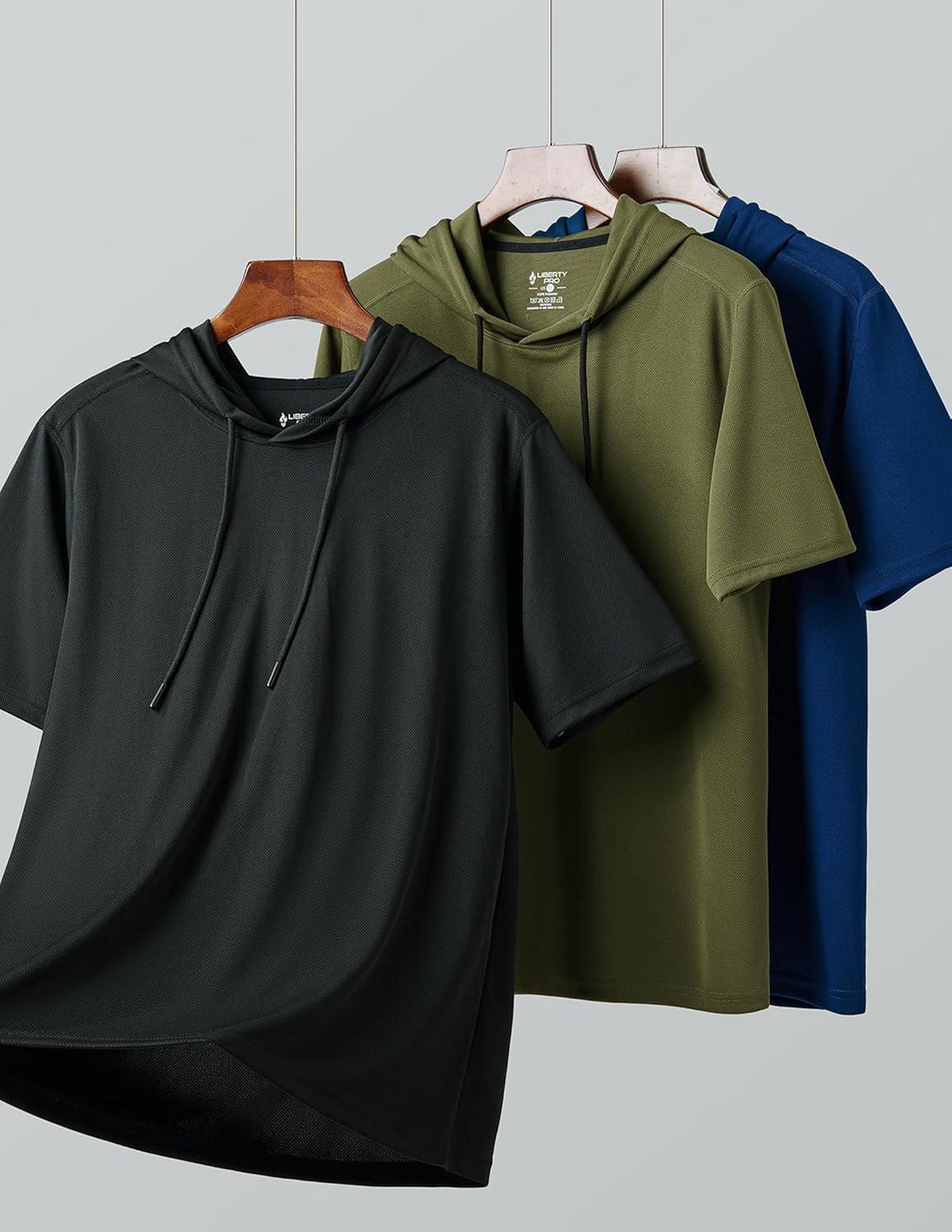 3 Pack: Men's Lightweight Short Sleeve Workout Hoodies, Athletic Dry Fit Hooded T Shirts for Gym Running(Black/Navy/Olive)