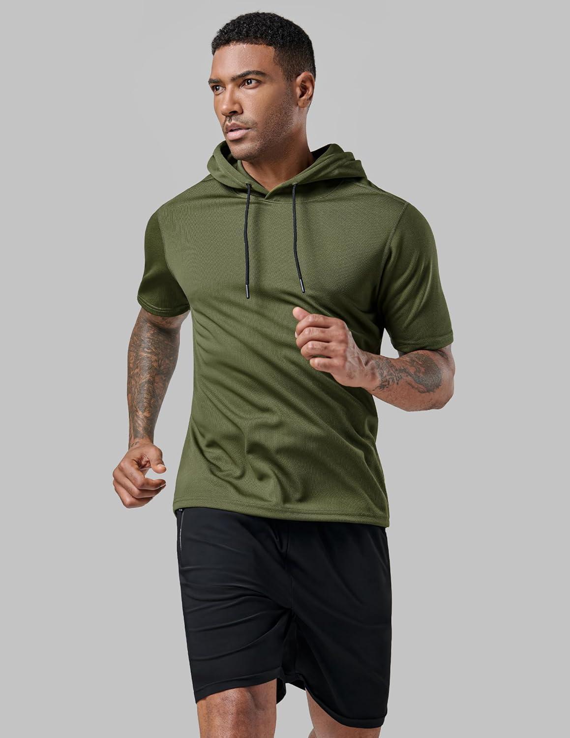 3 Pack: Men’s Lightweight Short Sleeve Workout Hoodies, Athletic Dry Fit Hooded T Shirts for Gym Running(Black/Navy/Olive)