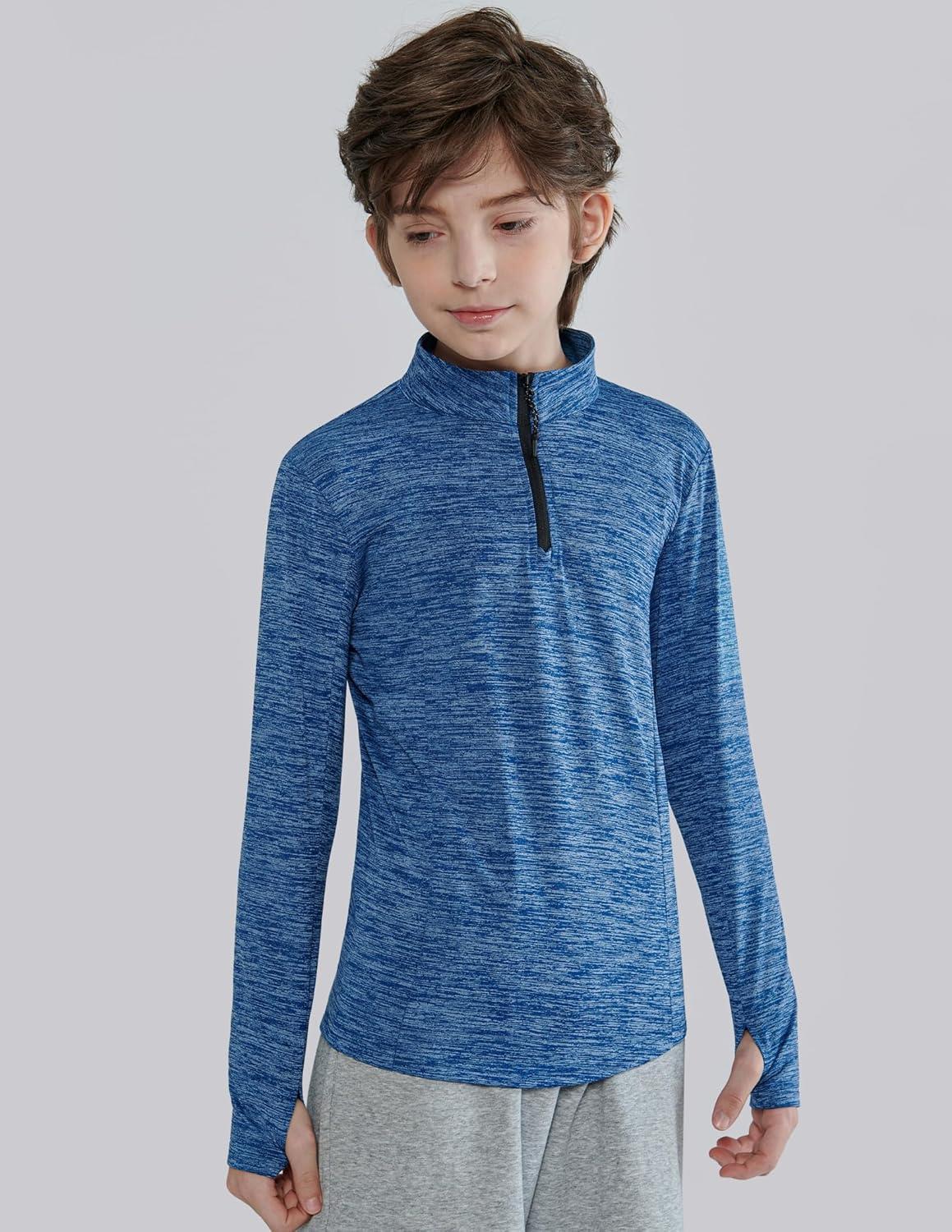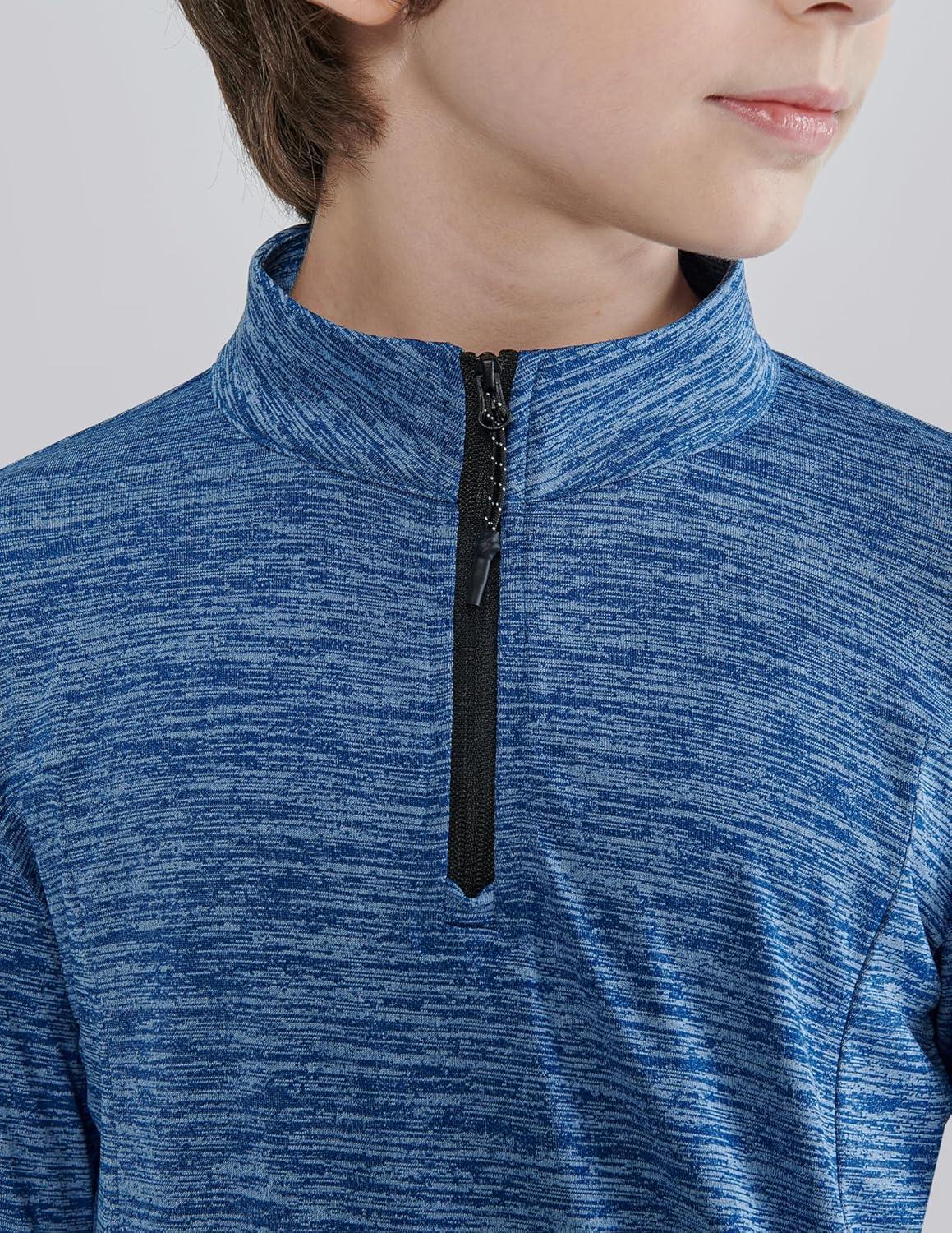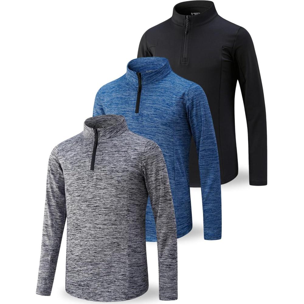 3 Pack Youth Boys Slim Fit Athletic Quarter Zip Pullover Shirts, Lightweight Long Sleeve Jackets Performance Tops(Blue/Black/Charcoal)