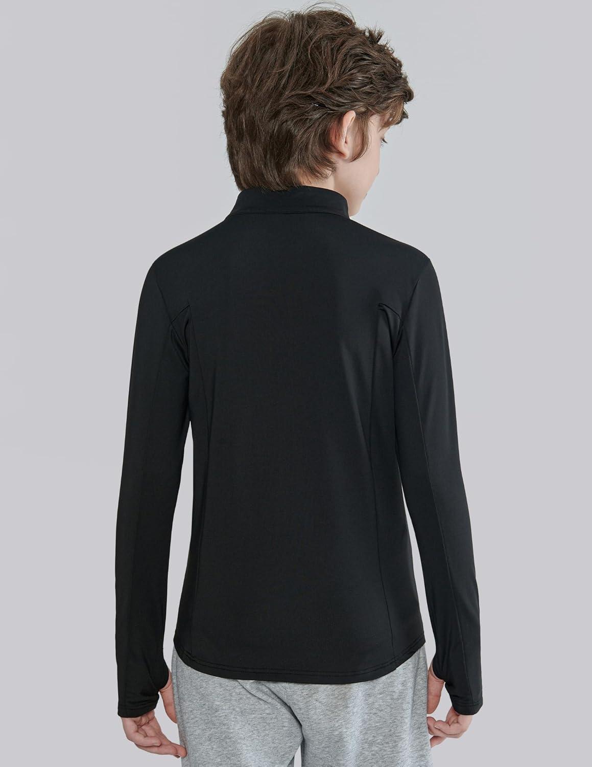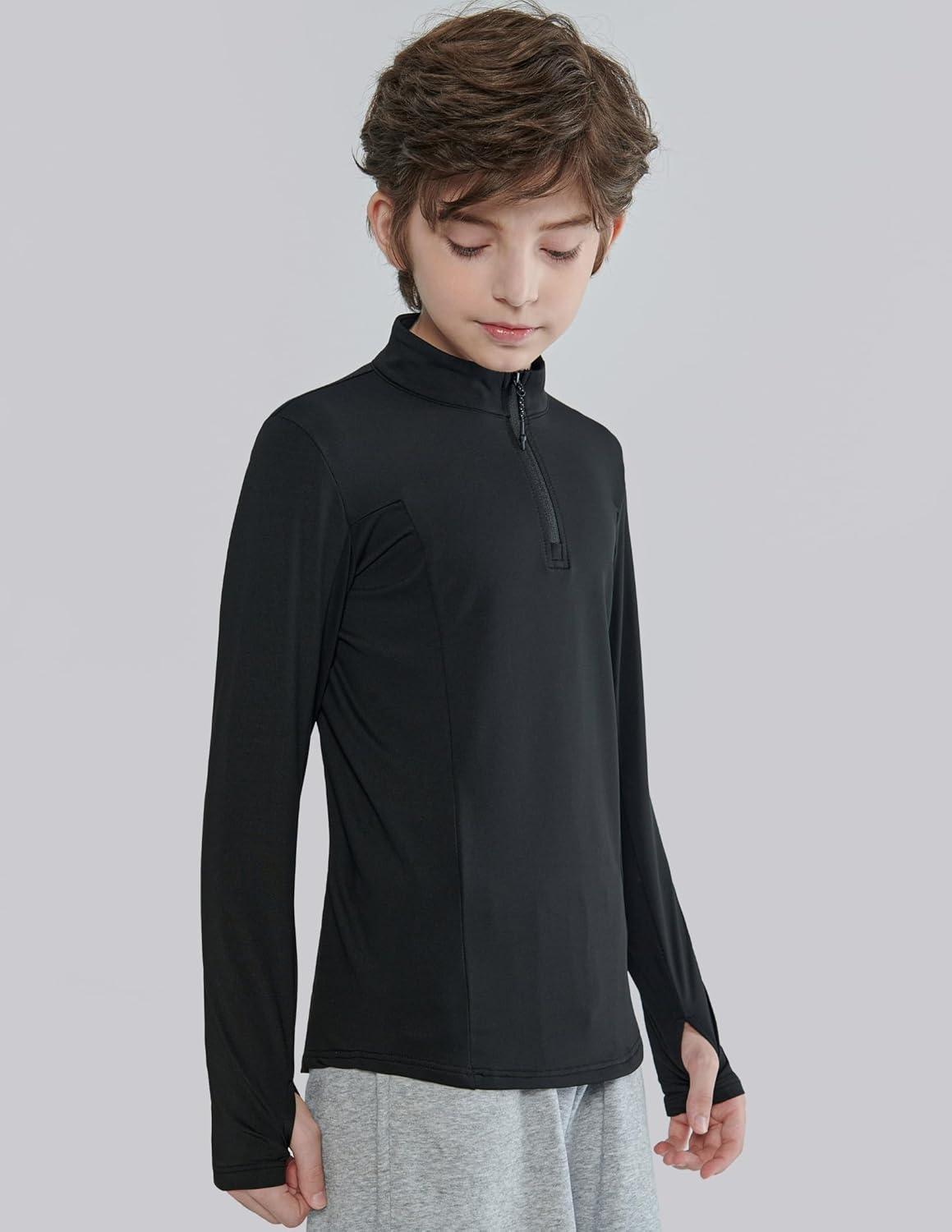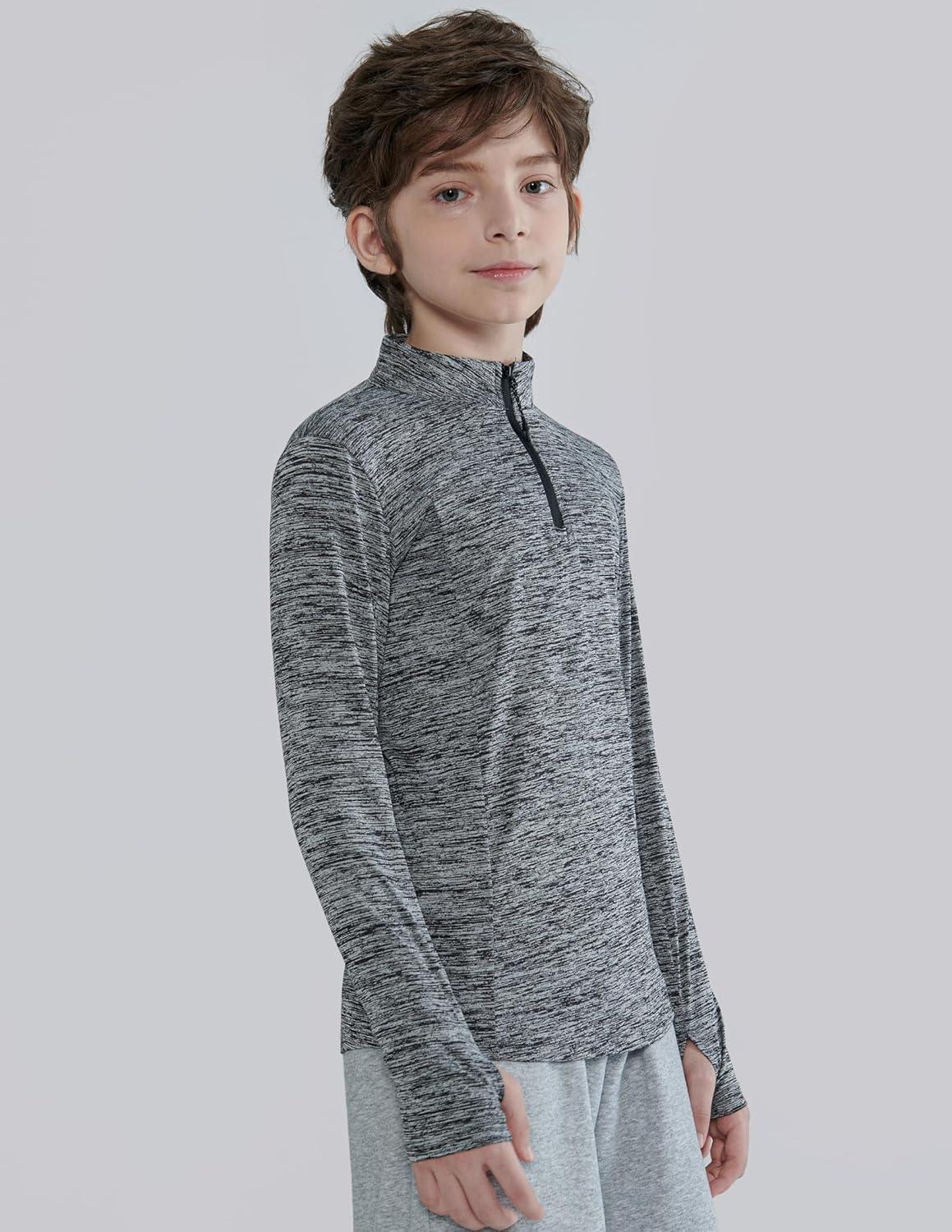 3 Pack Youth Boys Slim Fit Athletic Quarter Zip Pullover Shirts, Lightweight Long Sleeve Jackets Performance Tops(Blue/Black/Charcoal)