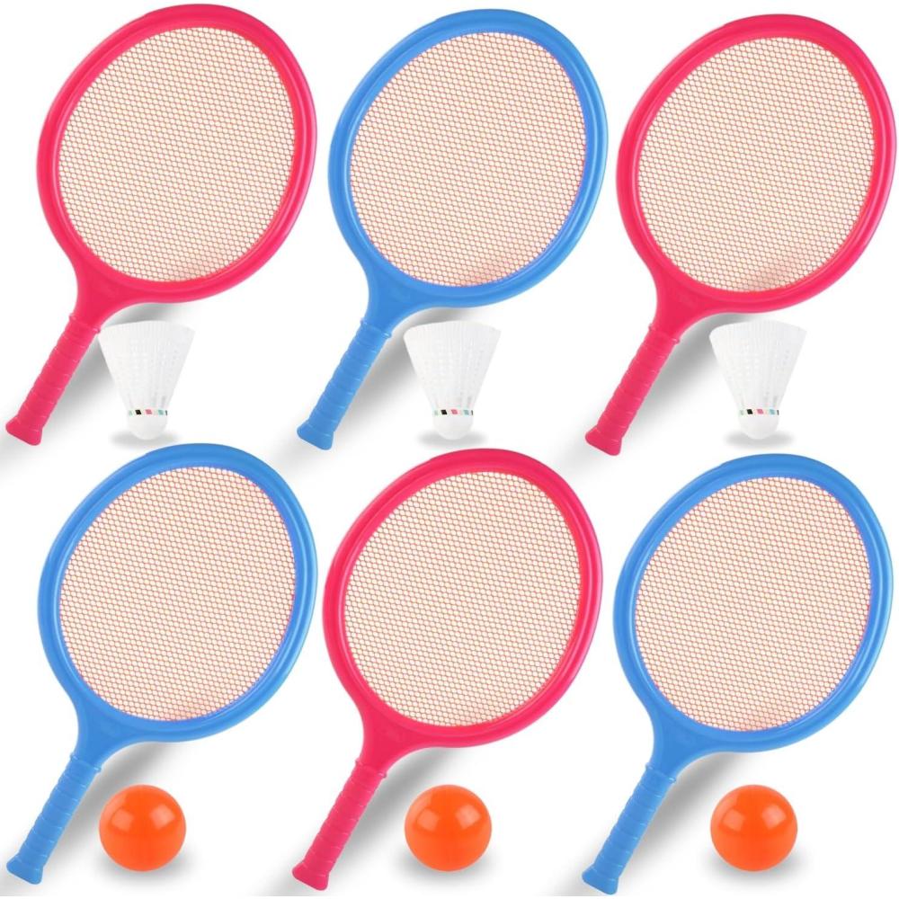 Giant sized rackets: This bulk value set includes 6 plastic rackets (3 blue, 3 pink), 3 birdies, and 3 balls—perfect for group play, kids' parties, or classrooms. Great for schools, daycares, and summer camps.